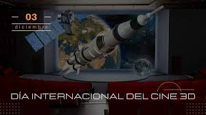 Hoy, 3 de diciembre, se celebra el Día Internacional del cine 3D, con la finalidad de reconocer un tipo de tecnología usada para filmar y proyectar películas que permite a las personas ver las imágenes de manera tridimensional y disfrutar una grata experiencia.